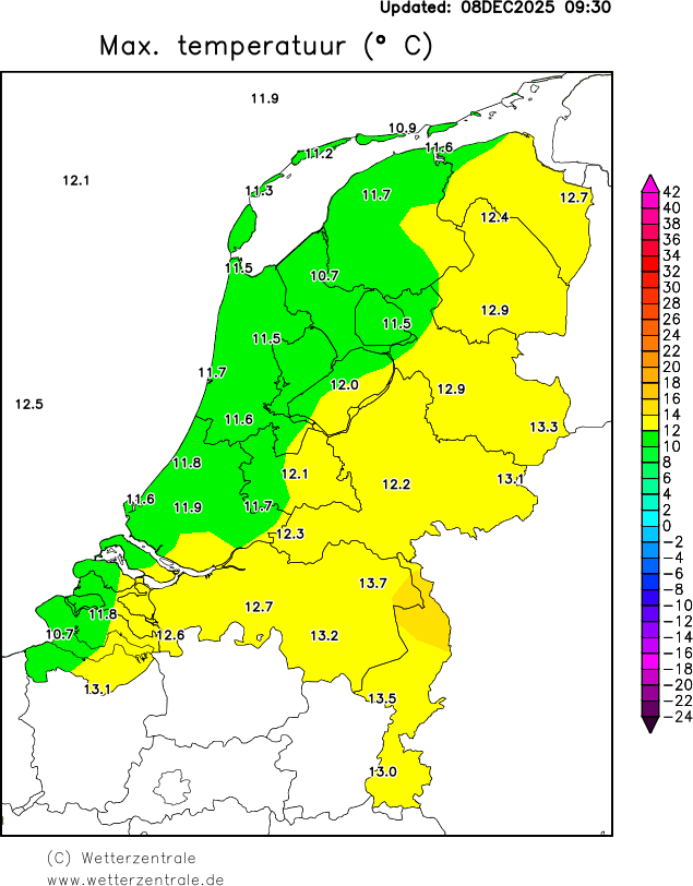 De Nederlandse weergegevens zijn afkomstig van het Koninklijk Nederlands Meteorologisch Instituut (KNMI). Klik hier voor meer informatie over deze gegevens. De gegevens worden dagelijks om 9:00 geupdate. De neerslag en sneeuwkaarten komen pas na enkele weken beschikbaar, omdat het KNMI deze gegevens eerst valideert.